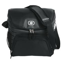 A killer chiller for tailgating golfing or hanging out in the back yard. 600D poly/420D diamond dobby/PEVA lining Adjustable padded shoulder strap Front zippered pocket Dual side beverage/accessory holsters Zippered insulated main compartment holds 18-24 twelve oz. cans Easy clean leak proof lining Collapses for storage Dimensions: 11 h x 11.5 w x 8.5 d Capacity: 1 200 cu. in./19.6L Weight: 1.05 lbs./0.48kgNote: Bags not intended for use by children 12 and under. Includes a California Prop65 hangtag.