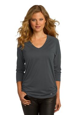 Laid-back attitude goes to the next level in this completely original micro stripe dolman.5-ounce 100% poly jersey with stay-cool wicking technologyOGIO heat transfer label for tag free comfortSelf-fabric v-neckDolman 3/4 sleevesSlight ruching at sides with tabs and O debossed ring snapsReflective heat transfer O at hem