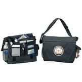 This streamlined messenger holds all the essentials while protecting your tech gadgets. 1 680D poly/450D poly/600D poly/400D nylon twill Interior padded laptop compartment with tablet/e-reader sleeve Padded mouse/digital camera pocket Deluxe organization panel Side beverage/accessory holster Easy-access front zippered pocket Interior divider with organization panels Rear magazine sleeve Adjustable padded shoulder strap Dimensions: 11.25 h x 14.25 w x 3.5 d Capacity: 560 cu. in./9.2L Weight: 1.0 lbs./0.45kg Laptop sleeve: 10 h x 14.5 w x 1.25 d fits most 16 laptopsNote: Bags not intended for use by children 12 and under. Includes a California Prop65 hangtag.