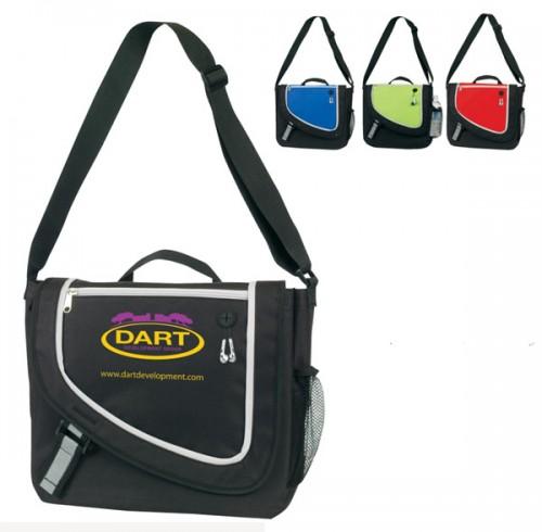 Front zipper pocket; Double pen pockets under flap; Velcro strap gusset closure; Ipod port; Side mesh pocket; Carry handle; Adjustable shoulder strap: 26 to 50 inches.