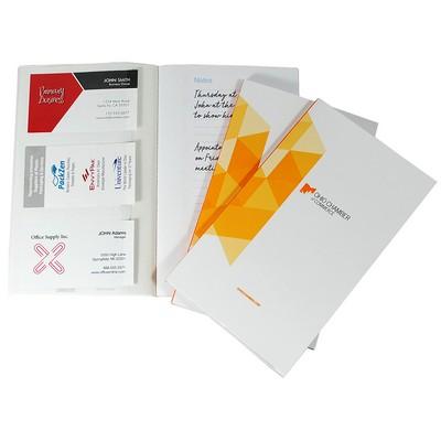 CardNoter is a business card organizational system that allows you to keep written notes for the business cards you collect. CardNoters use a clear pocket page to hold business cards and a lined paper page opposite to record details of your new contacts. The perfect bound CardNoter holds up to 45 business cards in 15 pocketed pages. Great for tradeshows, conventions, seminars, conferences, networking events and meetings. The entire outside and inside cover can be printed in full color. Complies with Prop 65. 4.5" W x 7.5" H x 0.25" Thick
