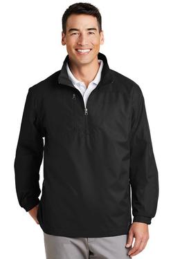 Wind and rain won't keep you out of the game in our 1/2-Zip Wind Jacket. Lightweight and soft this comfortable jacket resists the elements and won't hinder your swing thanks to its full cut and articulated elbows.100% polyester shell with PU coating 100% polyester lining throughout Triple-needle stitching on shoulders and back yoke Half elastic half self-fabric cuffs for comfort Side zippered pockets Zippered chest pocket Left side seam zipper for easy on/off Open hem with drawcord and toggles for adjustability