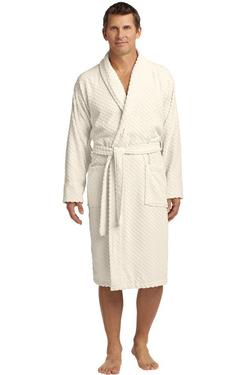 A welcome indulgence this cotton robe with its checkered texture and exceptional absorbency is perfect for the pool spa or resort. 9.2-ounce 100% cotton Two patch pockets at hips Self-fabric belt and loops for easy adjustment Measures:32 -40 chest 47 length (S/M); 40 -54 chest 50 length (L/XL)
