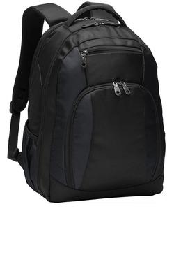 Our expansive durable backpack has a checkpoint-friendly clamshell opening-making it user-friendly while safeguarding your laptop and tablet. Coordinates with the Commuter Brief (BG307 sold separately). 1 680 denier ballistic polyester in solid and two-tone accentsBack laptop clamshell compartment with paddingCenter compartment with interior file dividerTricot-lined zippered pocketFront organization panelErgonomic adjustable padded shoulder straps Web top handlePullman handle attachment strap Laptop sleeve dimensions: 12 h x 12 w x 1 d; fits most 15 laptops Dimensions: 17 h x 12 w x 8 d; Approx. 1 632 cubic inches Note: Bags not intended for use by children 12 and under. Includes a California Prop 65 and social responsibility hangtag.