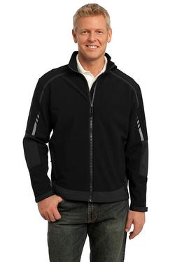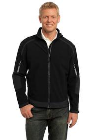 Classic soft shell design merges with modern two-tone graphics in our Embark Soft Shell Jacket. This eye-catching way to battle rain and wind features a zip-through cadet collar with chin guard and adjustable cuffs for the perfect fit. 93/7 poly/spandex woven bonded to 100% polyester knit lining with laminated film insert to repel water and wind 1000MM fabric waterproof rating 1000G/M2 fabric breathability rating Self-fabric adjustable tab cuffs with hook and loop closures Front zippered pockets Open hem
