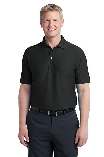 A subtle pique and jersey self-jacquard horizontal texture makes this polo stylish and work-friendly. Exceptional moisture wicking makes it comfortable. 5.2-ounce 100% polyesterFlat knit collar3-button placketOpen hem sleevesDouble-needle sleeves and hemSide vents