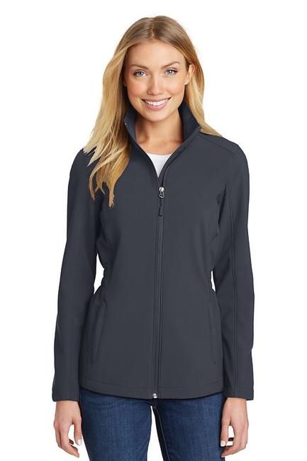 This feminine water-resistant soft shell has interior elastic at the waist to flatter your shape. 100% polyester woven shell bonded to a water-resistant film insert and a 100% polyester microfleece interior 100% polyester tricot-lined front zippered pockets 1000MM fabric waterproof rating 1000G/M2 fabric breathability rating Full-length interior storm flap Open cuffs and hem