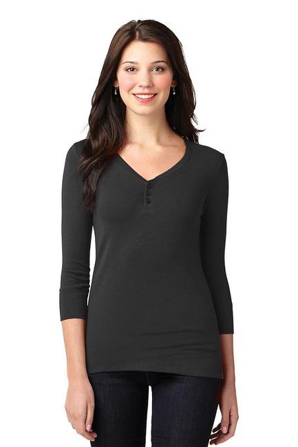 With a fit designed to be comfortable all day long our incredibly soft v-neck henley has 3/4 sleeves with wide cuff details to give it a modern look. 5.6-ounce 58/38/4 cotton/modal/spandex Self-fabric neck taping 3-button placket with dyed-to-match buttons Double-needle hem