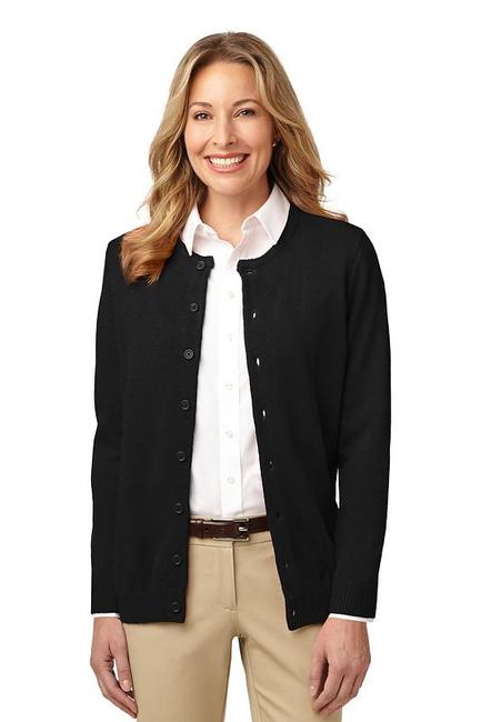 Extra durable and extra comfortable this cardigan sweater has a flattering neckline which lends professional style to any work uniform. 100% acrylic Low-pill finish 8-button cardigan placket with dyed-to-match buttons 1x1 rib knit neck cuffs and hem Spandex in cuffs and hem for shape retention