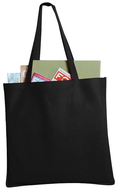 This flat tote has plenty of storage space. Double-stitched seams add durability.100 gram 100% polypropylene Self-fabric handles Dimensions: 15 h x 16 w Note: Bags not intended for use by children 12 and under. Includes a California Prop 65 and social responsibility hangtag.*Due to the nature of polypropylene fabric special care must be taken throughout the printing process. Heat transfer or screen printing are preferred decoration options.