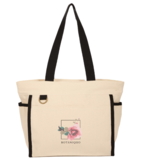 Carry necessities with a touch of traditional style.Durable 10-ounce 100% cotton twill contrast canvas bottom Deep exterior pocket for easy decoration Cotton web handles Dimensions: 14.5 h x 14 w x 5.5 d; Approx. 1 116 cubic inchesNote: Bags not intended for use by children 12 and under. Includes a California Prop 65 and social responsibility hangtag.