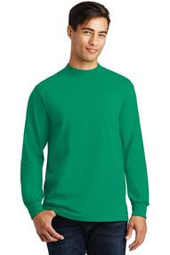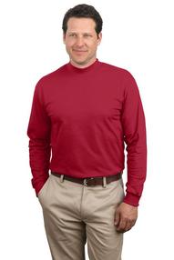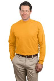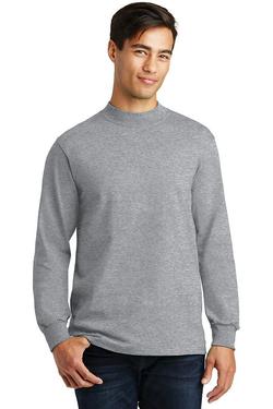 This budget-friendly mock is great on its own or layered under a sweater or jersey. 6.1-ounce 100% soft spun cotton Coverseamed neck Shoulder-to-shoulder taping Spandex in collar and cuffs for stretch and comfort Double-needle collar and hem Athletic Heather is 90/10 cotton/poly.