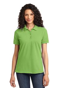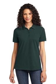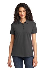 With a soil-release finish this budget-minded polo is exceptionally durable.6.5-ounce 50/50 double pique knit cotton/poly Soil-release finish Contoured body for a feminine fit 1x1 rib knit collar and cuffs 4-button placket with dyed-to-match buttons Coverstitched shoulders armholes and cuffs Side seamed Double-needle hem