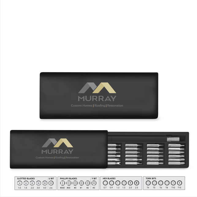 • Spring-loaded magnetic case with 24 stainless steel tools for specialized applications.