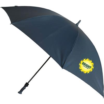 100% RPET pongee polyester material. Includes a matching carry case. Fiberglass shaft and ribs. Premium golf grip handle. This umbrella was made with recycled plastic bottles.