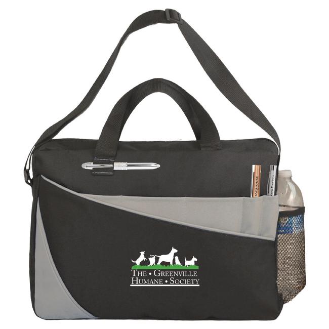 This stylish briefcase is highlighted by the colorful accents and large imprint area on the front. The large front pocket combined with the sizeable main compartment and side mesh pocket will allow you to carry everything you need with you. The adjustable shoulder strap and carry handles provide you with convenient options for bringing this bag along with you. Made of 600D Polyester.