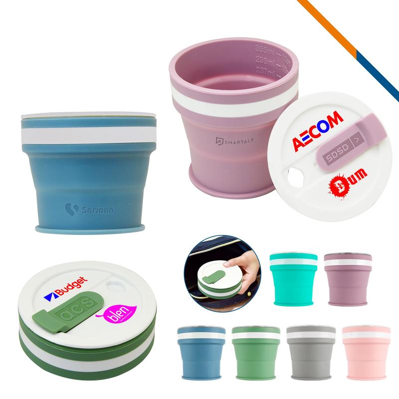With our rowling collapsible travel mugs, you can both help the environment and avoid feeling guilty about throwing away your empty single-use cups. The unique lid design has 2 easy access openings,1 for wider access and another for quick drinking access. It has a leak-proof and easy to use cap design, with a new unique dribble proof cap lid, it makes it foul proof. No more mess, easy to use and carry and takes up less space in your bag. Made of food grade FDA certified silicone, mold proof and does not contain BPA. Super lightweight, easy to clean and is freezer and dishwasher safe. It can be spot color imprint or laser engraving debossed on the silicone top and side. Cup volume: 350ml max size
