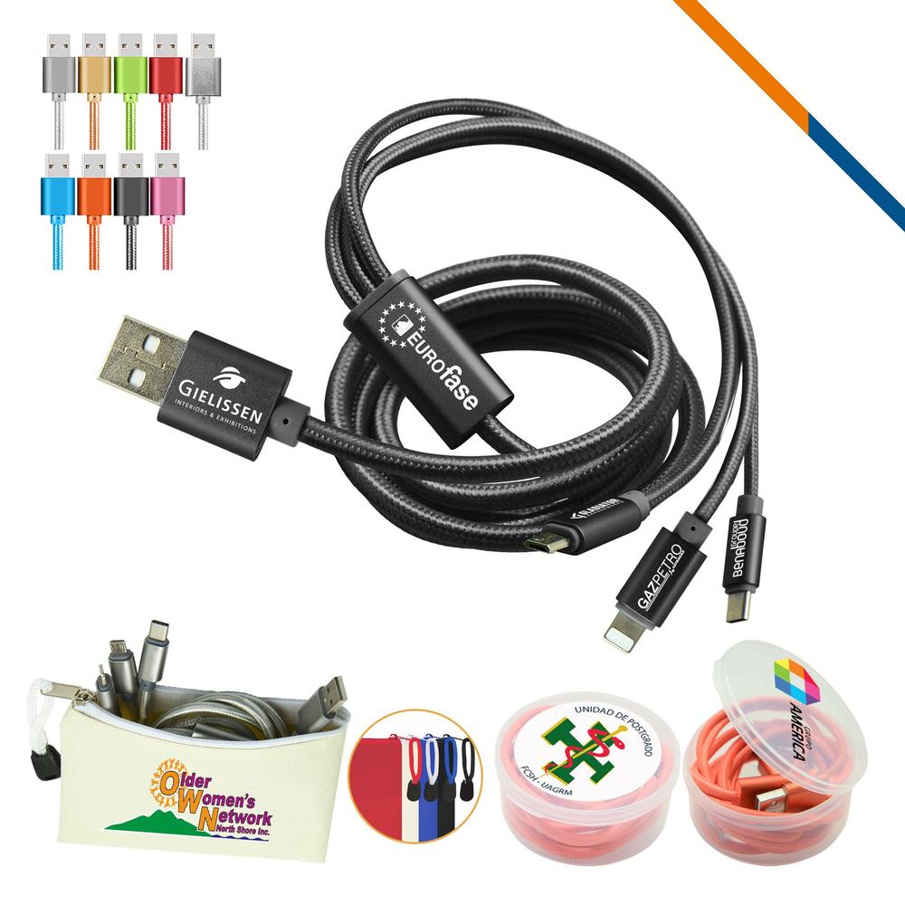 Rugger charging cable is available in a variety of colors and Bulk packaged, optional Zipper cosmetic pouch & plastic box available.