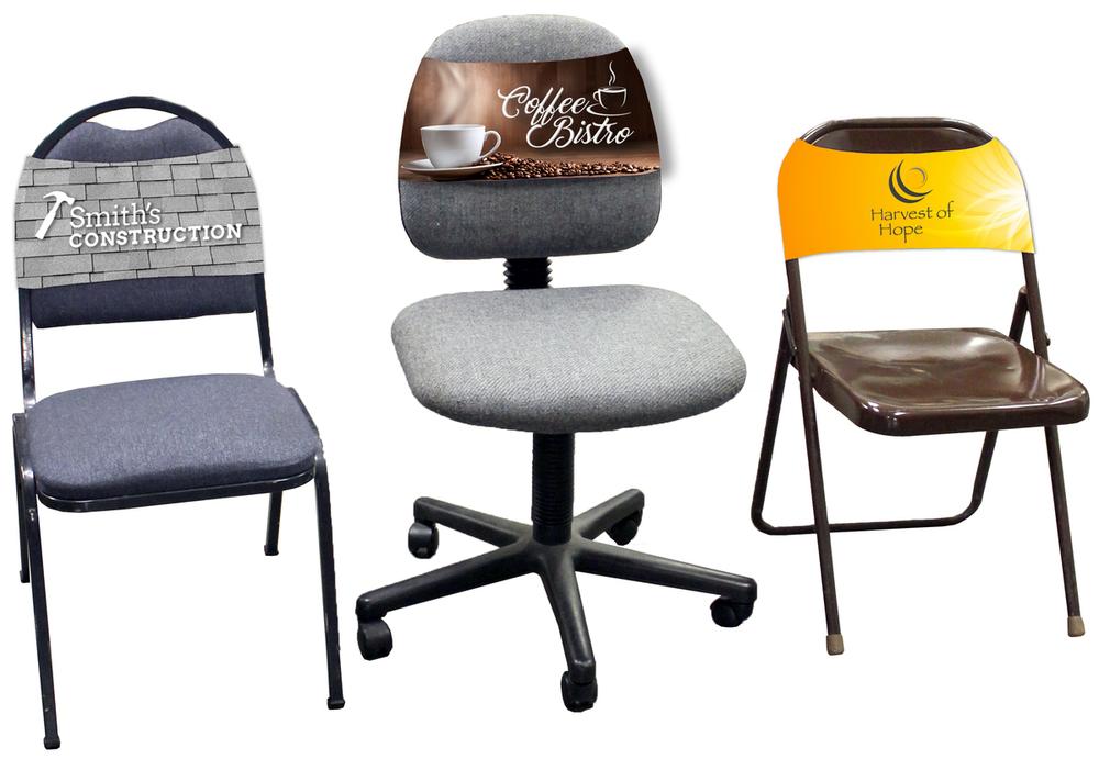Transform that boring assembly of common folding chairs into a chorus of promotional for your business or brand with these cool and colorful covers. These stretchy 18" x 11.5" polyester covers slip and fit securely over the backrest of most standard folding chairs to create a unified look and message. Go for double the impact with a double-sided imprint for the same price as a single! Add your school, sports team, organizational or company logo, emblem or message through our vivid dye sublimation imprint method to customize. See also 4080B (band style), 4076NW (short term / disposable option).