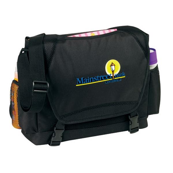 A handy accessory for your customers who are always on the go, this sport messenger brief bag will carry everything they need to get through their day. Made of 600 denier polyester with PVC backing and sponge nylon mesh, this bag offers an easy access large main compartment and a business organizer panel under the flap. Additionally, this brief has a front opened pocket on the flap, two secure lock buckles, two elastic side pockets to hold cell phones or water bottles and an adjustable webbed shoulder strap.