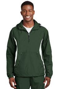 Sporty colorblocking and a 1/2-zip front make this soft anorak an excellent alternative to a wind shirt or jacket. 100% polyester shell 100% polyester jersey lining with mesh insets at gussets for added breathabilityThree-panel hood with drawcord and toggleRaglan sleeves Front pouch pocket Articulated elbows for greater mobility Half elastic half self-fabric cuffs for comfortLeft side seam zipper for easy on/off Drawcord hem with toggle