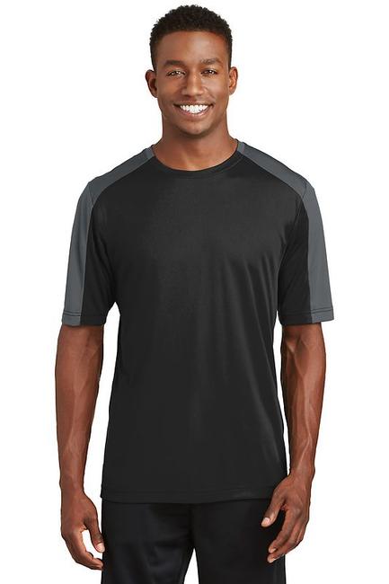Contrast sleeve blocking enhances the athletic look of our colorfast moisture-wicking value-priced essential. 3.8-ounce 100% polyester interlock with PosiCharge technology Removable tag for comfort and relabeling Set-in sleeves
