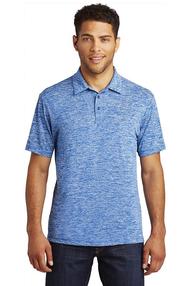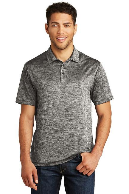 Our color-locking polo has a soft hand wicks moisture resists snags and is energized with an allover heather pattern. 4.1-ounce 100% polyester jersey with PosiCharge technology Removable tag for comfort and relabeling Self-fabric collar Taped neck 3-button placket with dyed-to-match buttons Set-in open hem sleeves Slight drop tail hem Side vents