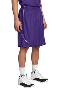 A roomy reversible moisture-wicking short that does double duty with spliced piping details. PosiCharge technology offers superior bleed resistance. 3.2-ounce 100% polyester mesh with PosiCharge technology White mesh reverse with colored piping Double-layer construction with open individually hemmed layers for easy decoration Elastic waistband with continuous loop drawcord 9-inch inseam