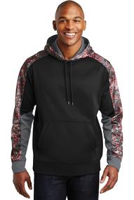 The granite-like Mineral Freeze print is strategically placed along with two solid team colors in this pullover that wicks moisture. 100% polyester Anti-static Three-panel hood Sublimated Mineral Freeze print on hood and sleeves Solid self-fabric hood lining Solid dyed-to-match drawcords with metal tips Two-tone sleeves Taped neck Self-fabric cuffs and hem Front pouch pocketDue to the nature of 100% polyester performance fabrics special care must be taken throughout the printing process.