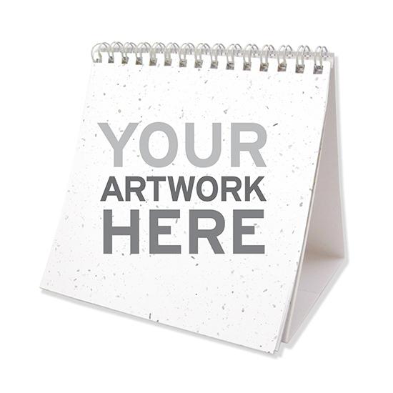 This Eco Calendar features a plantable seed paper cover and monthly calendar pages printed double-sided on six inner sheets of paper. Read about how plantable paper works. Tent calendar format sits smartly on desktops to prominently display your company logo and artwork on the cover and inside pages. Size: 5 x 5 inches.