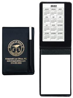 This item has a clear pocket on the inside of the cover to hold small cards such as business cards. This item includes a 30-page pad.