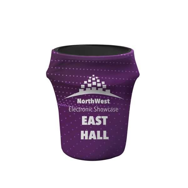 A unique branding solution to cover drab trash cans and increase advertising at your next event.