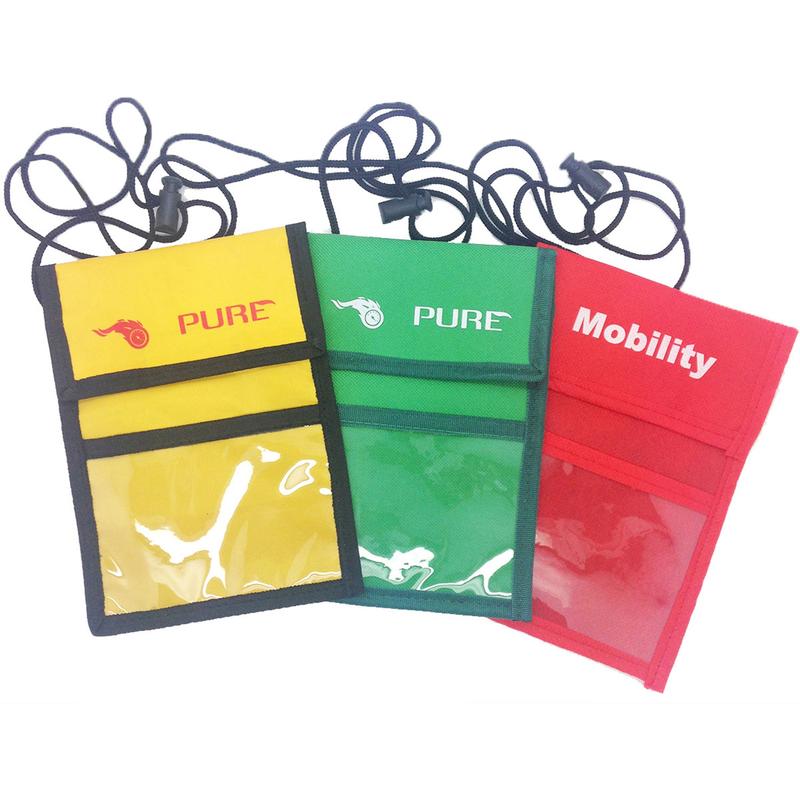 This sturdy rip-stop nylon neck wallet comes measures 6 3/5"H x 5 4/5"W and features an adjustable lanyard cord and pen holder. Front window pocket measures 4" x 3" with an imprint area of 1.5" x 2.5" using our four color screen print or full color/CMYK imprinting. A hook and attachable loop closure strap closes the wallet's top and a pen holder adds utility and available in a variety of body colors.