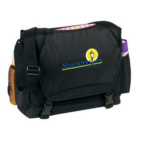 Trail Loop Drawstring Backpack, made of 210D polyester, features adjustable shoulder-straps, front pocket, side mesh bottle pockets, zippered bottom storage compartment and covered top access with drawstring closure.
