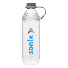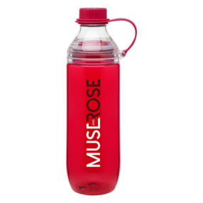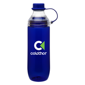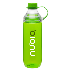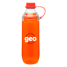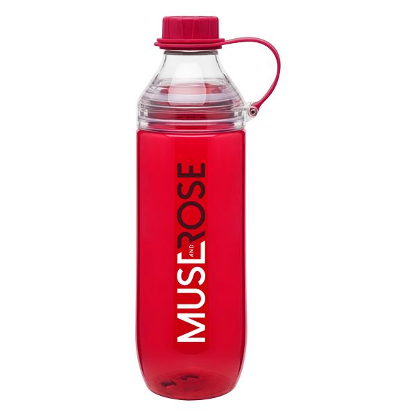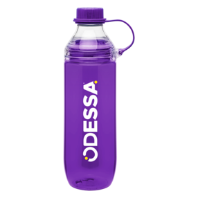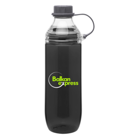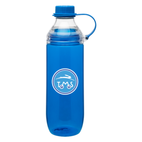 25 oz single wall [BPA-free] Eastman TritanTM copolyester bottle with threaded dual-opening lid, lid retaining loop, and silicone strainer · patent pending